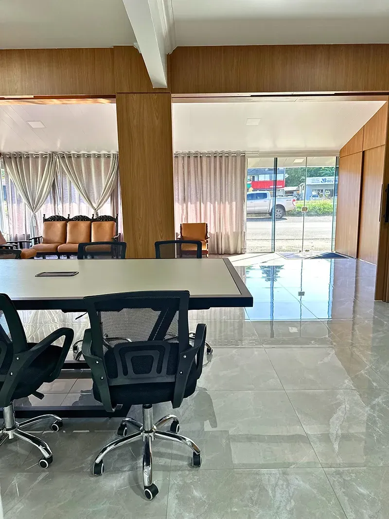 Nossa sala de reunião é o espaço ideal para encontros corporativos, treinamentos e eventos sociais. Com aproximadamente 40 metros quadrados, ela acomoda confortavelmente até 40 pessoas, proporcionando um ambiente propício para discussões produtivas e colaborações eficazes.