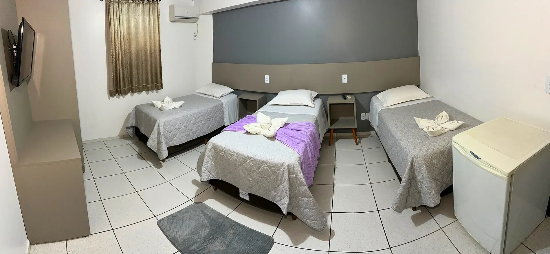 Conheça nosso quarto de aproximadamente 20m², projetado para oferecer conforto e praticidade durante sua estadia. Este espaço aconchegante conta com 03 cama de solteiro macia, ideal para uma boa noite de sono.
